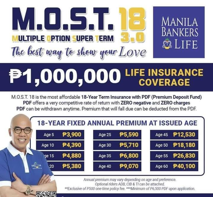 Ex, Age 25 - Php 5,590 per year gives you 1,000,000 life insurance coverage,